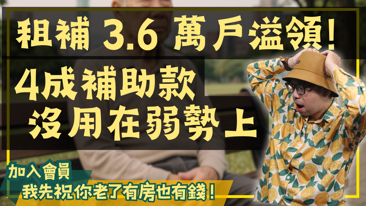 這次來講一個新聞,真的很誇張。標題我念一下:「內政部3.6萬戶溢領租金補貼,59件詐領案已移送檢調」。根據內政部最新報告指出,截至今年3月31日止,租金補貼專案計畫溢領情形約有3.6萬戶,占4.6%。其中涉及詐領有446件申請案,59件已移送司法檢調機關偵辦。申請租補,結果申請到刑事案件,真的是太誇張了!